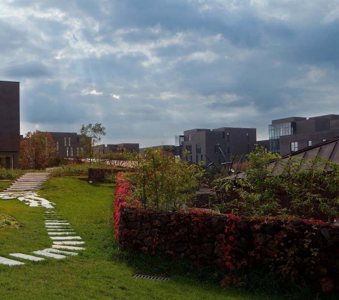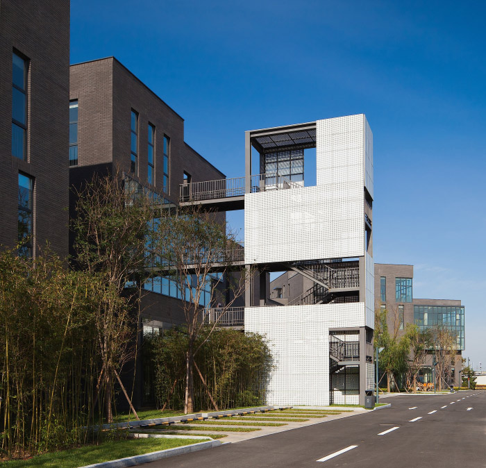 【王永刚】:枢密院的整体设计。这个项目是围绕如何最有效地促进生产而进行的,因为这是一个特色的办公区。所以为了规划景观、建筑全面综合区域发展政策的设计,就此展开各自独立的生产设计,满足了不同规模的需求。能够获得较好的空间品质,规划上尽可能弱化,相邻的边界在平面和竖向上枢密院都做到了,一期的小独栋和二期的服务大楼也为企业规模的边界进行了处理,因此说枢密院是通过对企业性的研究来尊重在这里的每一个企业和每一个人。