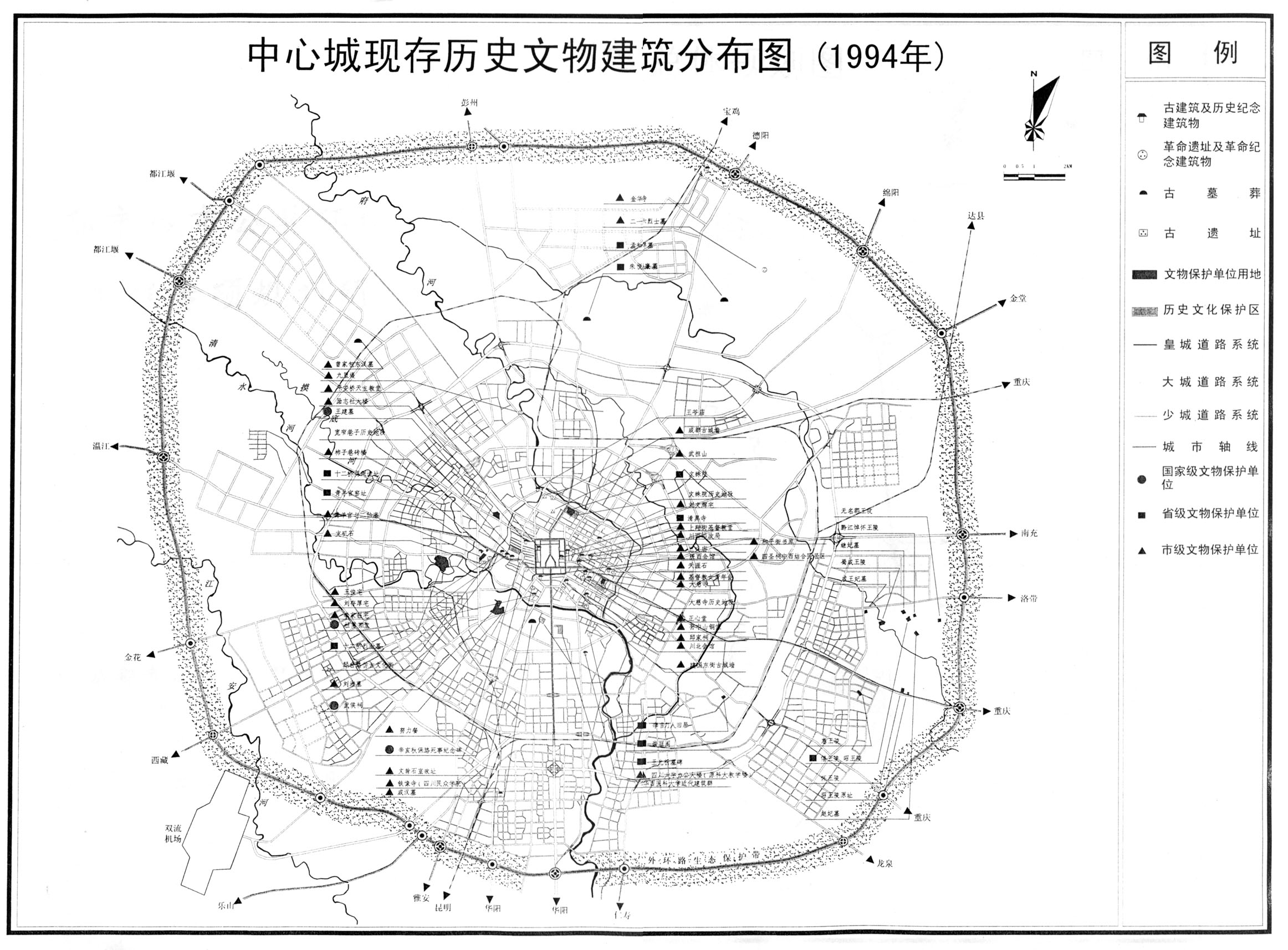 成都市中心城区现存历史文物建筑分布图(点击可下载原图:589K)