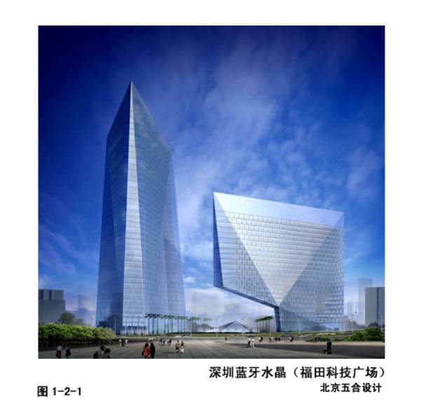 1—2—1~3兰牙水晶(深圳福田科技广场),北京五合事务所与法国结构公司、德国生态智能公司合作。其设计的核心理念是:用科技高度而不是建筑高度来引领一个时代。建筑方案阶段即考虑到系列化生态设计,实现结构、设备、材料等全方位生态化。提出了十大生态智能技术方案,力求最大限度利用绿色环保能源,创造低能耗、健康舒适的工作环境。