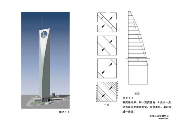2—1—1~2上海环球金融中心,美国KPF事务所设计,日本33家银行、保险、商社公司投资,因金融危机停工5年,现重新启动。原本94层460米改为101层492米,在决定纽约世贸方案前为世界第一高。性质:办公、酒店、美术馆等。
