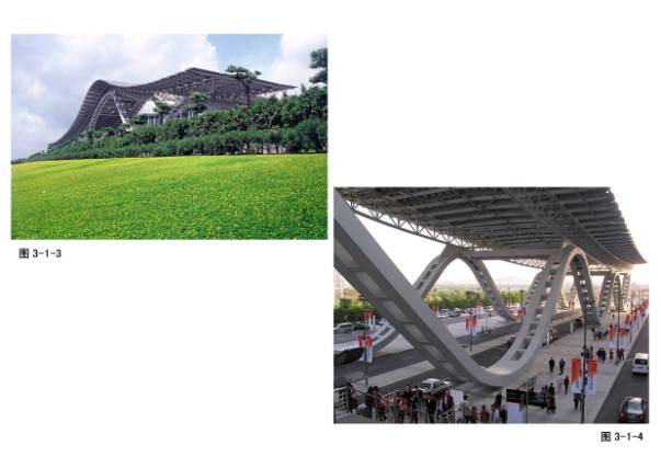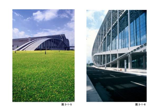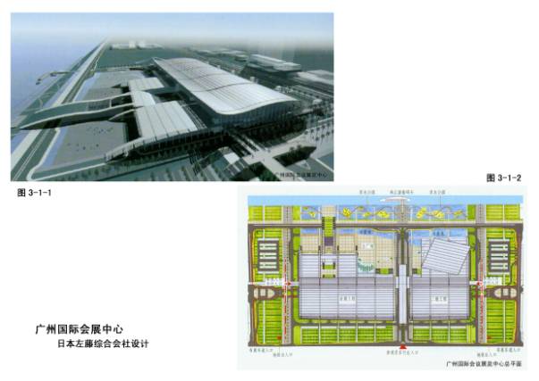 3—1—1~6广州国际会展中心,日本佐藤综合会社与华南理工大学建筑设计院合作设计。20万平米,设计主题为“飘”。与珠江恰如其分的结合,巨大建筑在波浪中化解了它的体量,共分两期工程。
