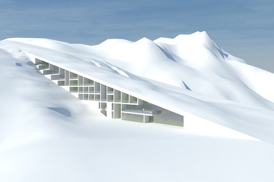 SeARCH建筑事务所目前的项目:在瑞士阿尔卑斯山的地下酒店。它建造在山腰,使用的能源由自己产生。