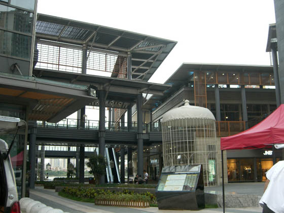 可能建筑师的初衷是想营造一个把购物和散步结合在一起的休闲场所,说它本来就不只是购物的功能。好了,我们来分析一下,如果我去购物,我就不想让那些建筑语言,环境美景,冗长路线来分我的心,这样让购物变得散漫和没有目的性,购物最终是以买到东西为乐的,如果买不到满意的东西,我去购物干嘛?如果我去散步,那么这又是购物场所,拥挤嘈杂,光怪陆离,享受不到休闲放松的感觉,要散步我还不如去海沧湾公园来得心情好,而且我相信商家也不希望顾客是去散步的。所以,散步和购物是不能结合的两种功能,两者是互相干扰的。