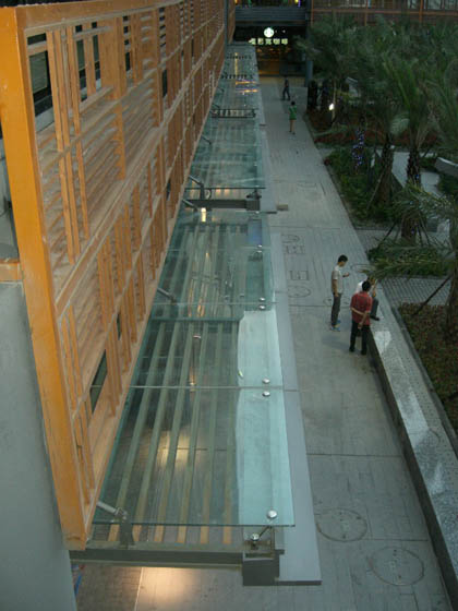 不连续的玻璃雨棚:不能遮雨 不能遮阳