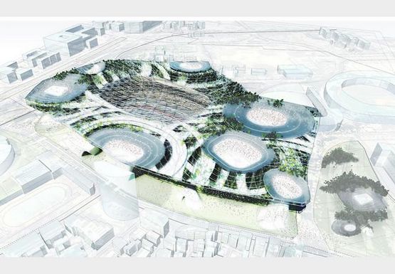 这个项目的要求是在一个狭窄的场地设计一个有80,000个座位的体育场,为日本举办2019年“橄榄球世界杯赛”做准备。