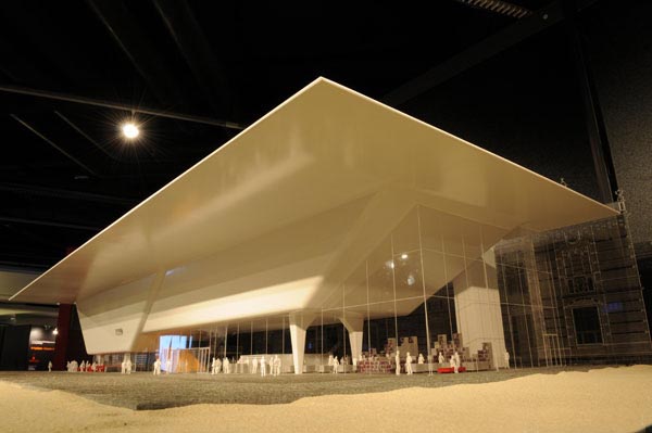 “提升旧建筑,增加展览空间,并在地面一层朝向广场的地方开设餐厅和商店。新馆突出的屋顶像一个巨大树冠,意欲激活广场的西北角。”力图打造又一个地标性建筑,新馆的描述听上去很美。阿姆斯特丹市立博物馆新馆的首席设计师麦尔思·克伦威尔宣称,新馆头顶的“浴缸”是一种技术创新,外立面由增强合成纤维构成,符合空气动力学原理,白色的飞机漆外表增添了博物馆的珐琅色光泽,也是在向旧馆致意。当然,正如库哈斯不能解释央视大楼外观一样,麦尔思也无法向观众解释“大浴缸”的隐喻。