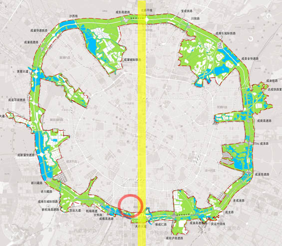 它的东侧是长度超过100公里的世界最长城市中轴线,从北端的三星堆遗址一路垂直南下通达天府新区。