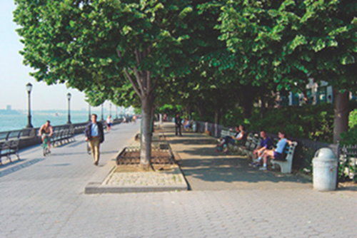 2、曼哈顿的“炮台公园城”(Battery Park City),是通过用公园或步行者基础设施取代水滨道路,提高城市生活质量的典型。