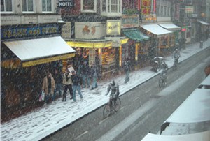 积雪未能阻碍阿姆斯特丹的行人或自行车。
