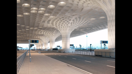 SOM建筑事务所设计的新的科幻式的孟买贾特拉帕蒂-希瓦吉国际机场(Chhatrapati Shivaji),有莫卧尔王朝的蘑菇状的圆柱和华夫饼(waffle)屋顶,与宝安机场的设计类似,但更传统一些。