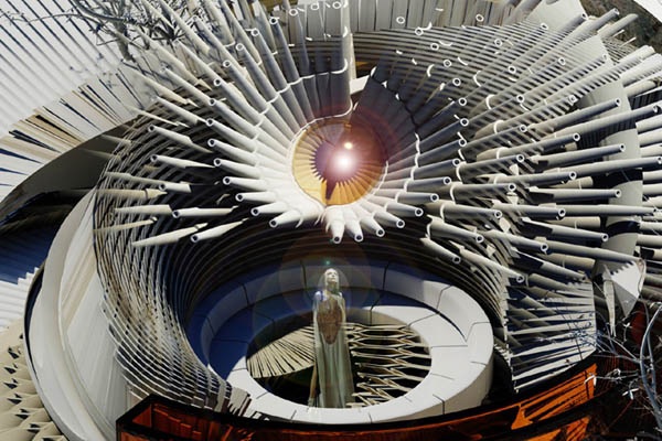内层壳体是一个轻量级的非铁金属硬壳结构,能够在潮汐涌入的时候在外部壳体中漂浮。休息室仅由三个模块组成,便于根据住宅的功能需求进行拆卸。同时,外表面是由水泥覆盖的简化水流运输系统。表皮内有着的一系列的水渠道,能产生漩涡效果。水流围绕着体量旋转,能聚集更多的潮汐能量。