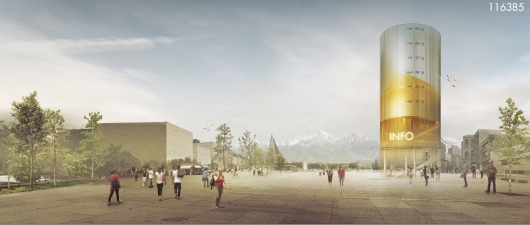 概念设计的主要目的是创建一个紧凑和可持续的展馆。内部空间总面积为234平米,被分为三层:信息层、纪念品层和商务中心。一楼是开放的,同时也是广场的一部分。