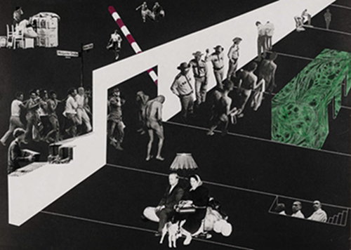 库哈斯为伦敦做的半开玩笑的设计,通过伦敦的中心划了一条宽带,创造一个快乐主义者区域,将“充分满足个人的欲望”。当这座城市的居民涌入这个地区时,伦敦其余的地方将变成废墟。(要求向纽约现代艺术博物馆借用这幅图画的博物馆和美术馆,比要求借用这个博物馆的其他建筑和设计收藏品的博物馆和美术馆通常更多。)