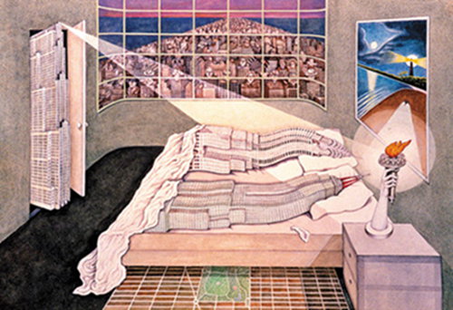 库哈斯在二十多岁的时候回到阿姆斯特丹。他避开激进的政治活动,参加了一个处于欧洲文化舞台边缘的荷兰超现实主义作家小团体。他对笔者说:“有两种‘60后’,一种是先锋派,高度的现代主义者——安东尼奥尼(Antonioni)、伊夫-克莱因(Yves Klein)。另一种是盎格鲁-萨克逊人的、嬉皮士的、政治方面的人士。我对先锋派比较感兴趣。”