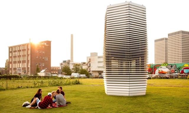 设计师Daan Roosegaarde通过集资,设计出世界上最大的烟雾净化器,目前已经在荷兰鹿特丹的公园启动。它采用了六边形造型,高约7米,每小时可以清洁约3万立方米的空气,旨在帮助城市和公园获得更洁净的空气。另外,被收集的废气污染物还可以制成手首饰,可以说是一个很好的再生利用概念。