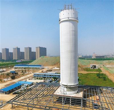5月12日,长安区西长安街与居安路十字西南角,工人正在除霾塔上进行施工作业。日前,由陕西环保集团负责建设、运营的大型太阳能城市空气清洁综合系统(HSALSCS)西安国家示范工程项目除霾塔如期封顶。